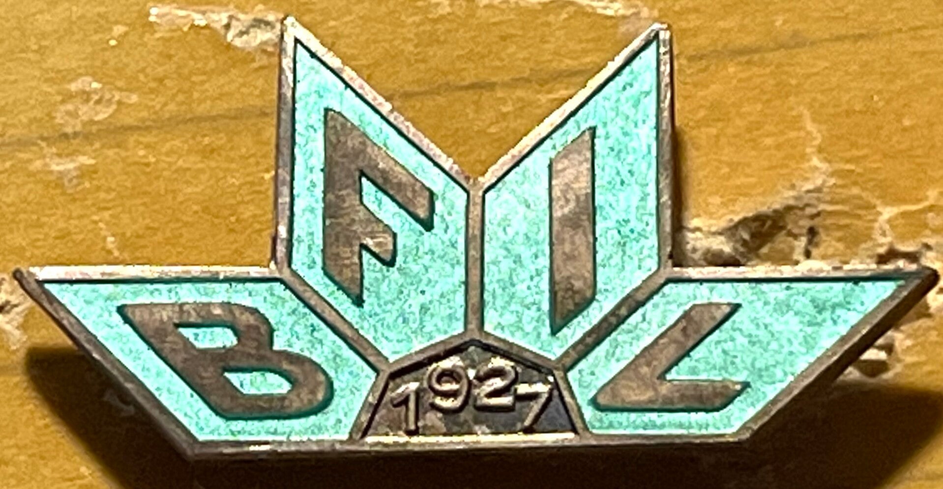 Nytt foreningsmerke: Foreningsemblemet fra 1950. De hadde et foreningsmerke, men var ikke særlig fornøyd det og utlyste en ide konkurranse. Det kom inn flere forslag, men valget faltpå det som er dagens BIF-merke, den store B med ski og bandykølle i kryss under fotball. Dette er tegnet av Martin Auke. Det ble forøvrig aldri noe bandyspill i organisert form i Bødalen.