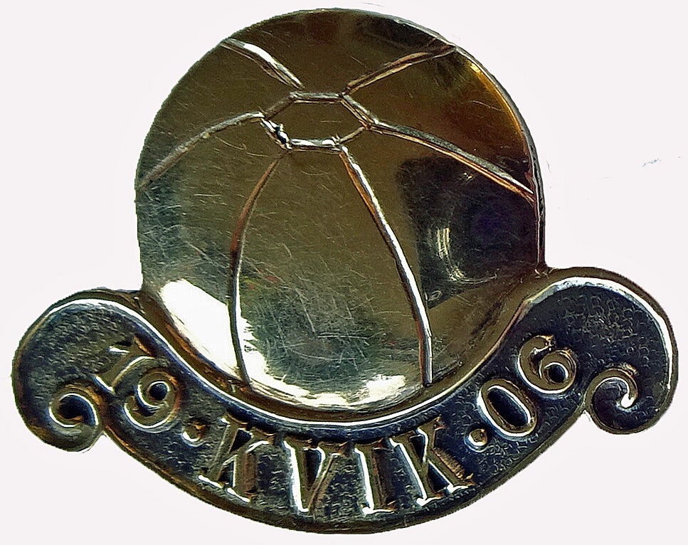 Merke: I 1916 skaffer klubben seg sitt foreningsmerke der besår av en fotball i brun emalje, hvorunder en hvit emaljerand med innskription 19 Kvik 06.