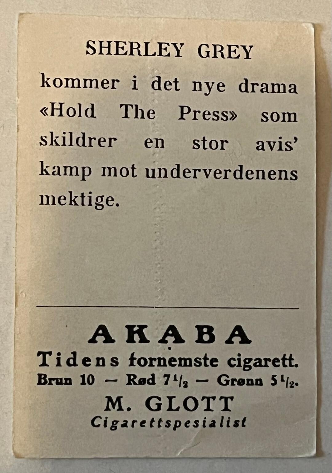 Sherley Grey, American actress. Collectorcard Akaba cigaretts