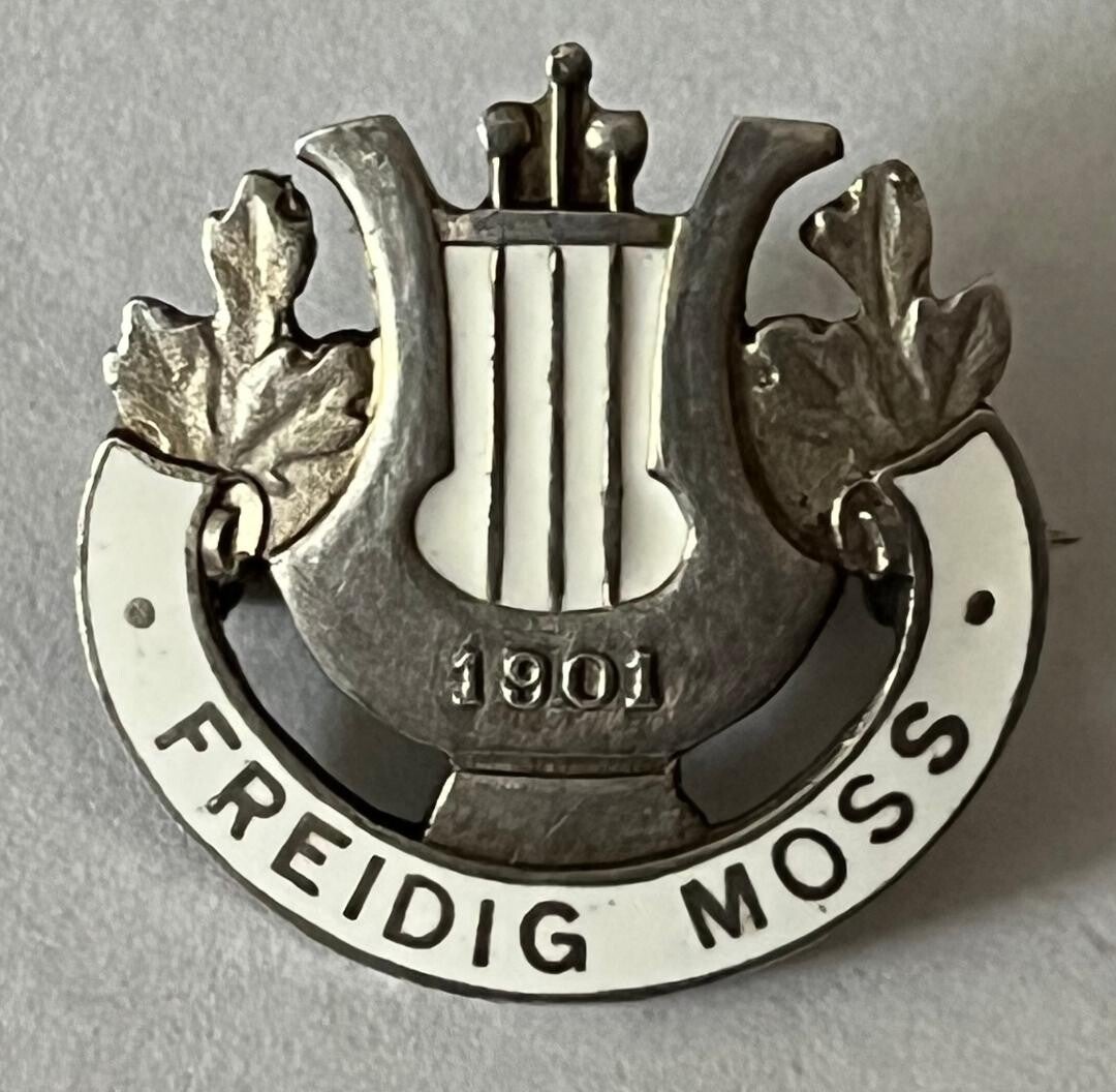 Koret Freidig Moss sølv og emalje nål musikk